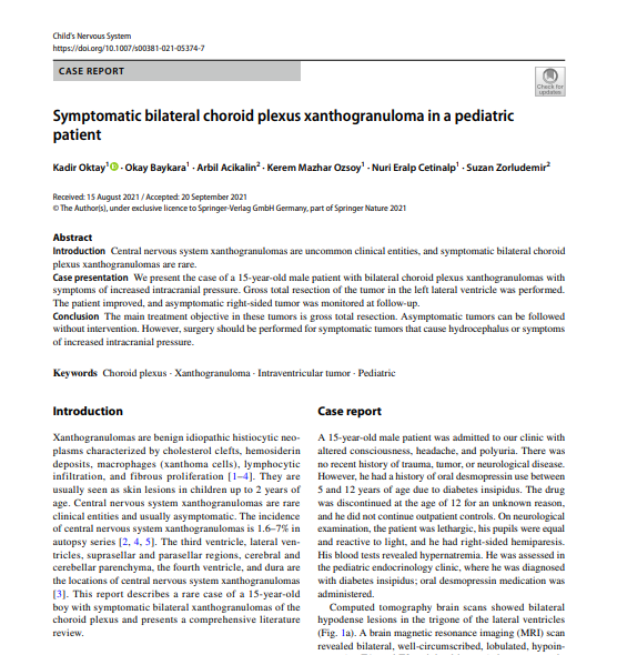 Oktay et al. Symptomatic bilateral choroid plexus xanthogranuloma in pediatric patient
